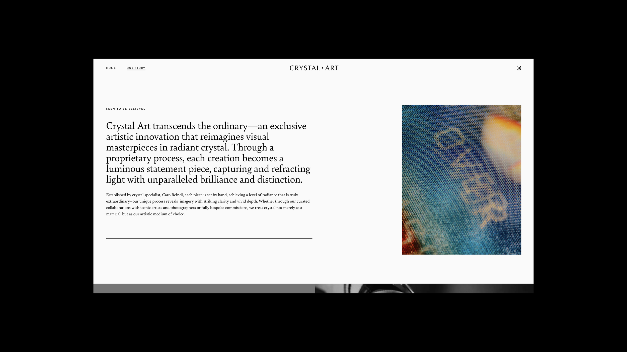 Our role was to strategically position Crystal Art to support its commercial ambitions: appealing to private clients seeking highly bespoke commissions, while remaining equally compelling to international luxury brands exploring high-end collaborations. The resulting brand framework balances exclusivity with scalability, enabling Crystal Art to grow across both commissioned artistry and premium commercial partnerships without compromising its integrity or craft.